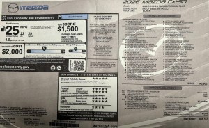 At a price of $45,010, the CX-50 offers a compelling mix of value and features. Built in Madison, Alabama, it comes with a thoughtful selection of options, including a panoramic moonroof and leather seating. The Ingot Blue paint stood out as distinctive, complemented nicely by the stylish alloy wheels and charcoal colored cladding. Overall, this is a well-executed crossover that feels polished and purposeful—and it earns a clear thumbs up.