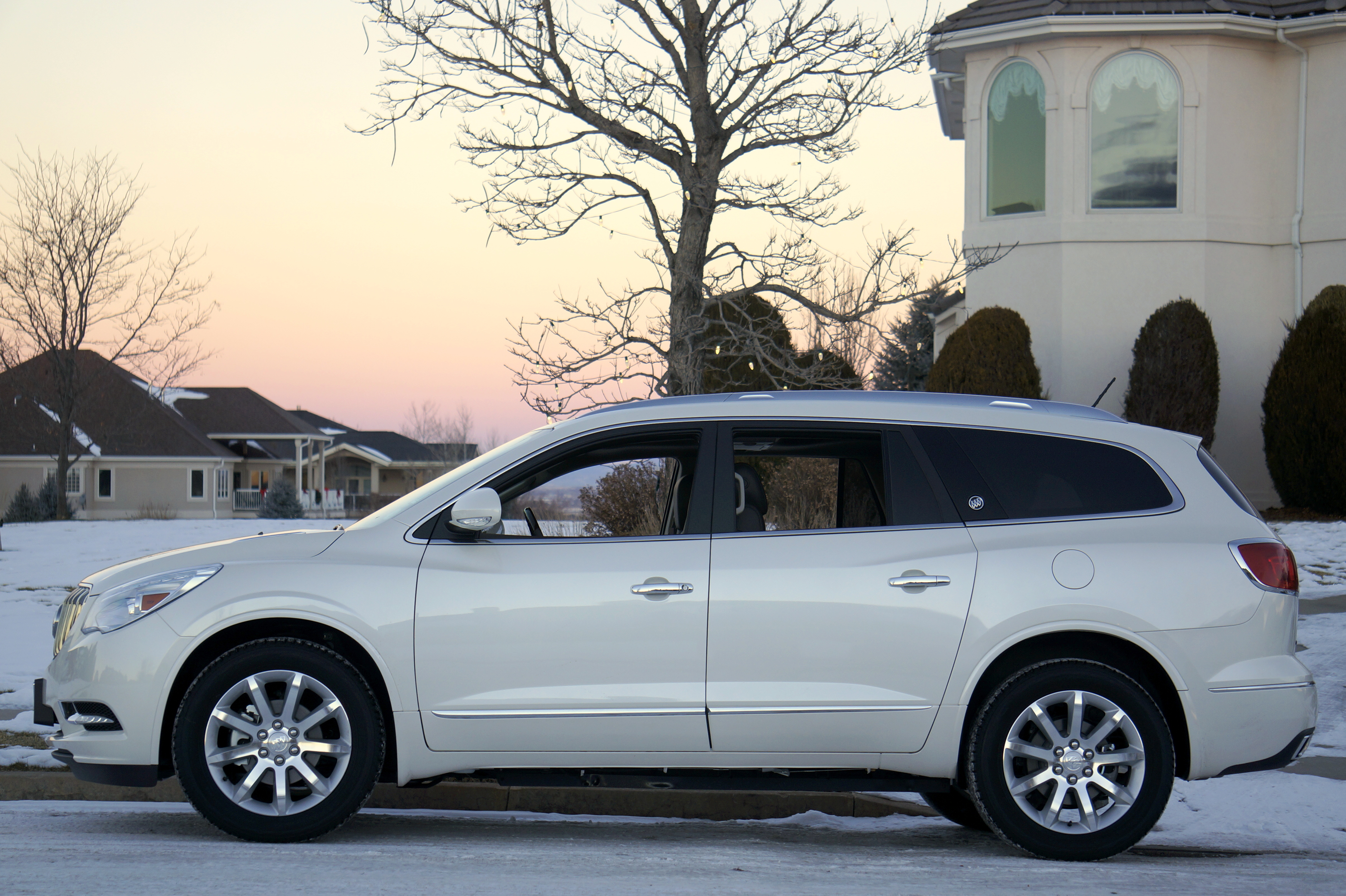 Last week I conducted a test of the 2014 Buick Enclave Premium Group SUV, courtesy of Weld County Garage in Greeley. The vehicle was painted White Diamond Tricoat metallic and the interior was Cocoa leather with seating for seven. A facelift was incorporated into the 2013 Enclave, and carried over to my loaner, that included a new chrome waterfall grill, LED lighting front and rear, updated dashboard with IntelliLink display, and an industry-first front center airbag.