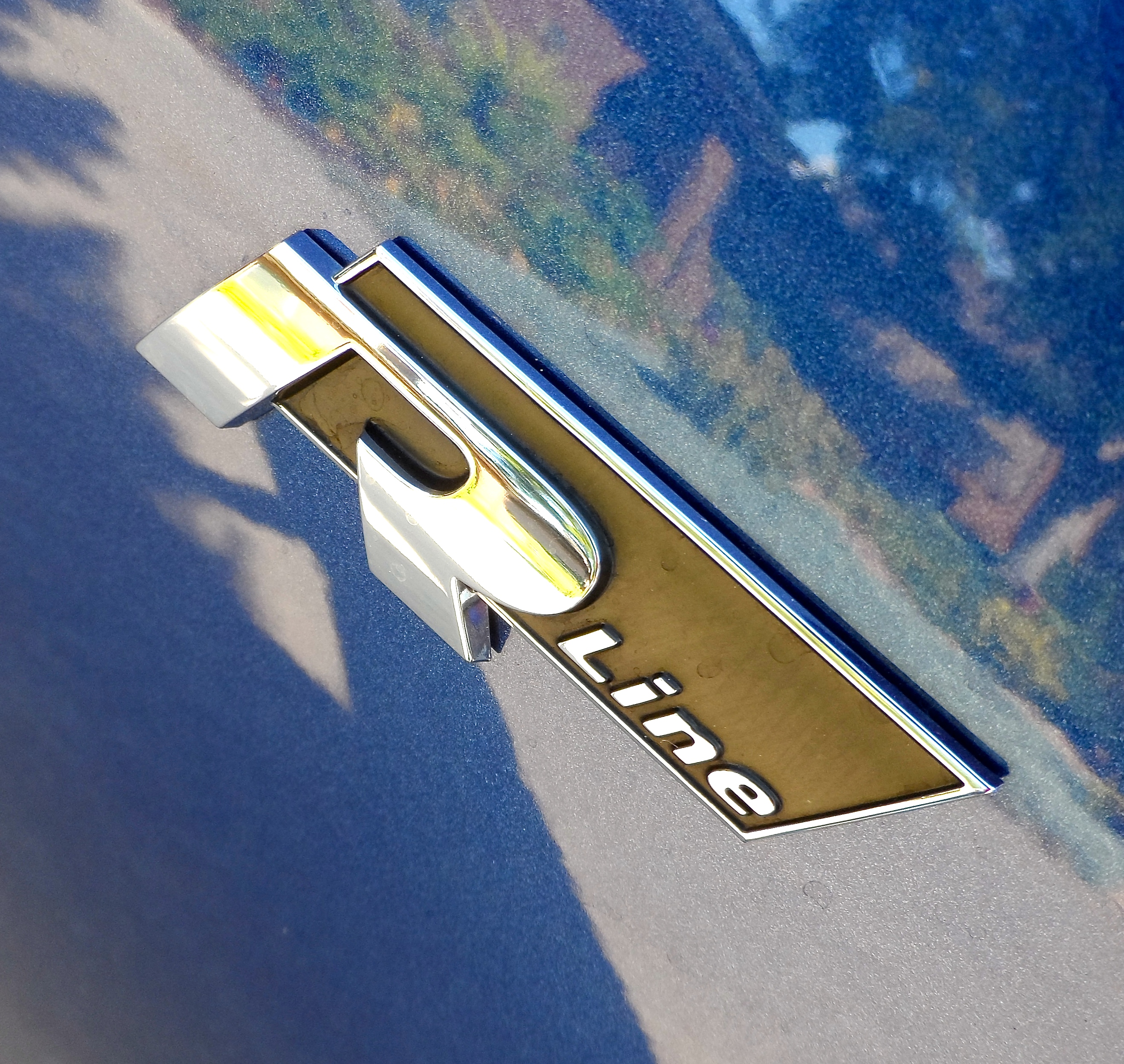 Inside the Volkswagen, a Fender premium stereo was on hand as well as sunroof, heated leather buckets, Bluetooth connections, navigation, pushbutton starter and satellite radio.  The theme inside was two-toned black and blue and somewhat kicky.  Styling was great with ten spoke polished alloys and attractive black trim work low on the outside.  SAM_3523