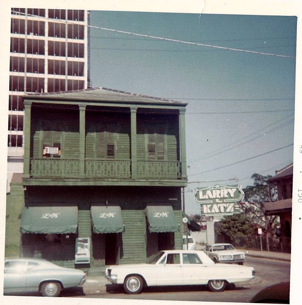Two years ago I wrote of Al Hirt, famed New Orleans trumpeter and bandleader, owning a bar on Bourbon Street in the 60’s, and that I was sure that I had been in it at some point while serving in the Air Force nearby. My favorite watering hole, however, was Larry & Katz (pictured), an establishment a few blocks away from the French Quarter, where only white patrons were allowed inside. Everyone else had to drink outside on the sidewalk in front of the bar. That wasn’t my attraction to the place; that’s just the way it was all over Louisiana in 1967.