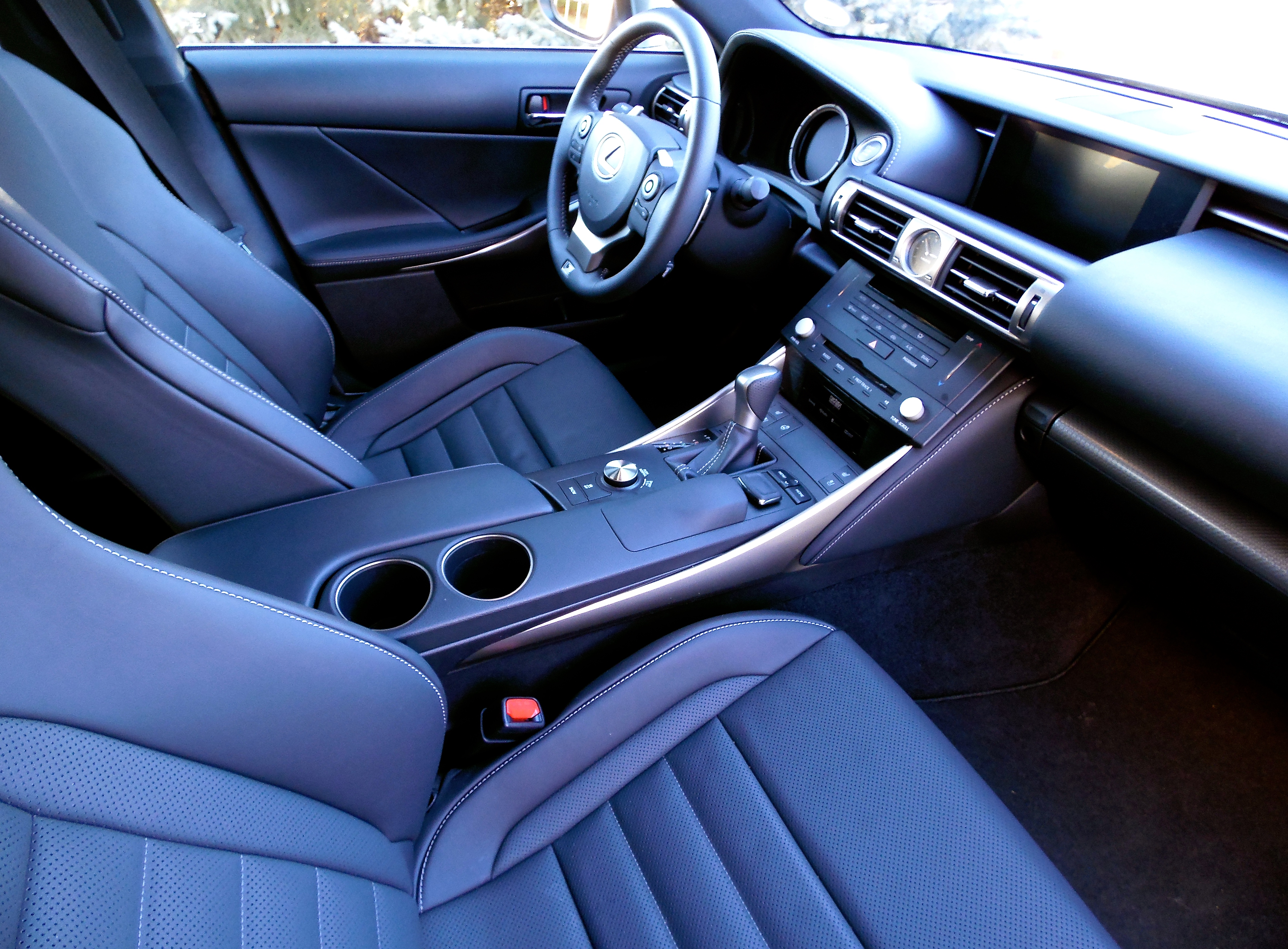 Speaking of all seasons, the IS has a mode selector (on the console) that includes a snow setting for winter driving. For the other seasons, ECO, sport, and normal modes are on hand for a total of four settings. My Lexus was an F Sport iteration of the IS, which has more capable underpinnings for track-like performance. An exhilarating intake-noise sound generator kicked in when accelerating, so the car seemed more exciting than it actually might have been. It was enjoyable.