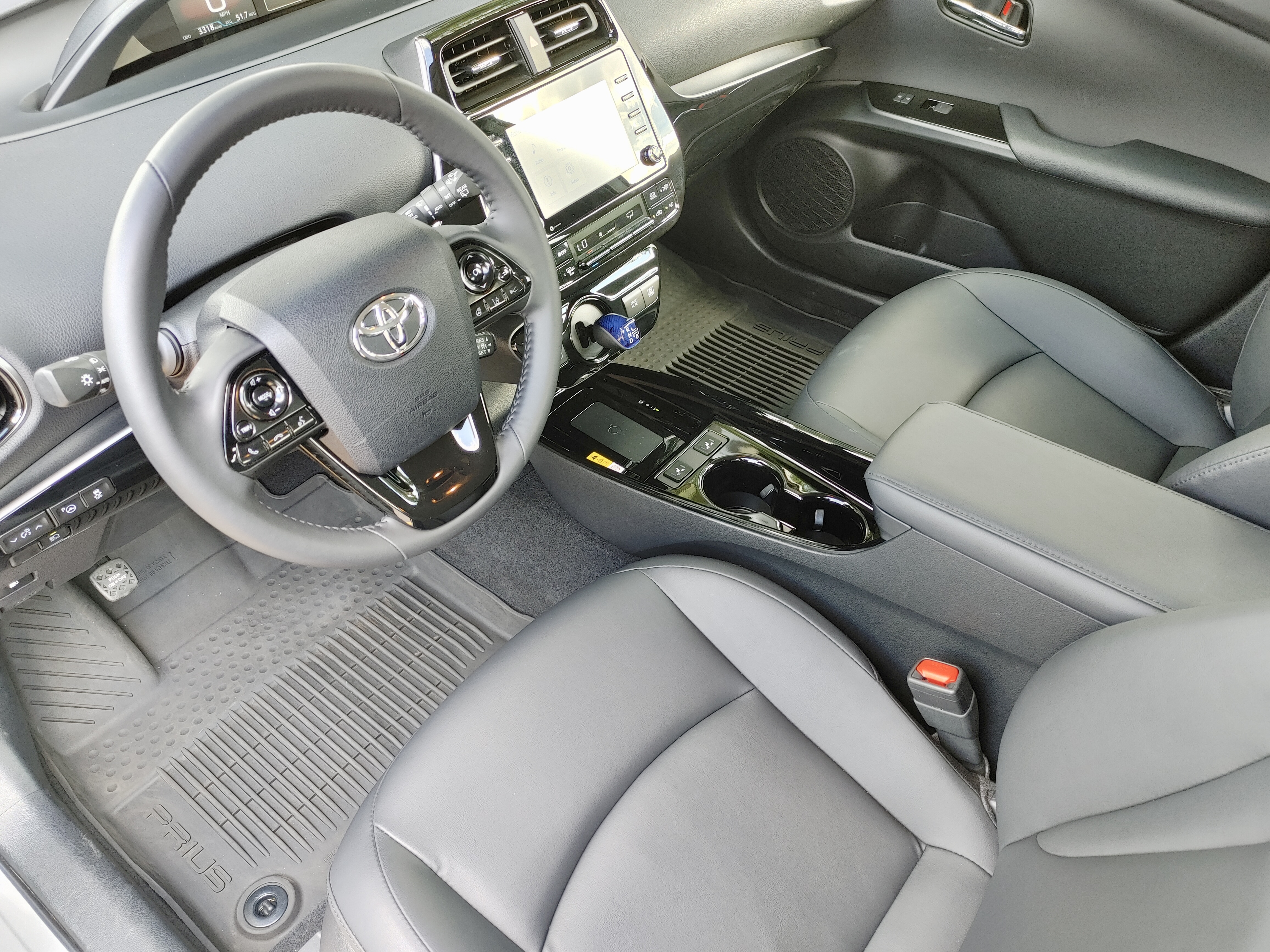 George and Alana both of Pirate Radio 104.7FM, pitched in to help review the Toyota Prius:Classic silver metallic paint with black Softex seating for 5, heated front buckets with dashboard mounted shifter, weighs 3,075 lbs. and has a 106.3” wheelbase and is 180” long, 27.4 cubic ft. cargo space (50.7 w/seats flat), 17” – black