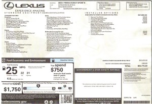 horsepower, 284 ft. lb. of torque, 8 speed automatic transmission, dual exhausts, zero to 60 in 6.1 seconds – front wheel drive, $53,775.00 list price – built in Georgetown, Kentucky – fuel economy (31 highway 25 combined 22 city), 16 gallon tank with 520 mi. range