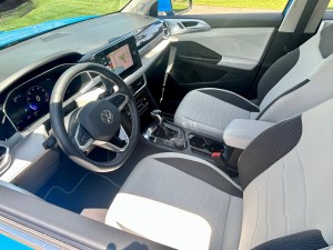 CloudTex interior trim, console mounted transmission shifter, flatbed phone charger, 8” multimedia display, Sirius satellite VW 6 speaker studio stereo, outside power and heated mirrors, CloudTex wrapped heated steering wheel, radar cruise control, Apple Car Play/Android Auto setup, rear vision camera, navigation, manually operated tailgate, 1.5 liter turbo four with 174 horsepower, 184 lb. ft. of torque, eight speed automatic transmission with all wheel drive – zero to 60 in 7 seconds – 113 mph top speed, fuel economy is 33 on the highway, 25 in town and 28 mpg overall rating. M.S.R.P. is $31,475.00, fuel tank holds 14.5 gallons and the Taos can go 479 miles on a full tank