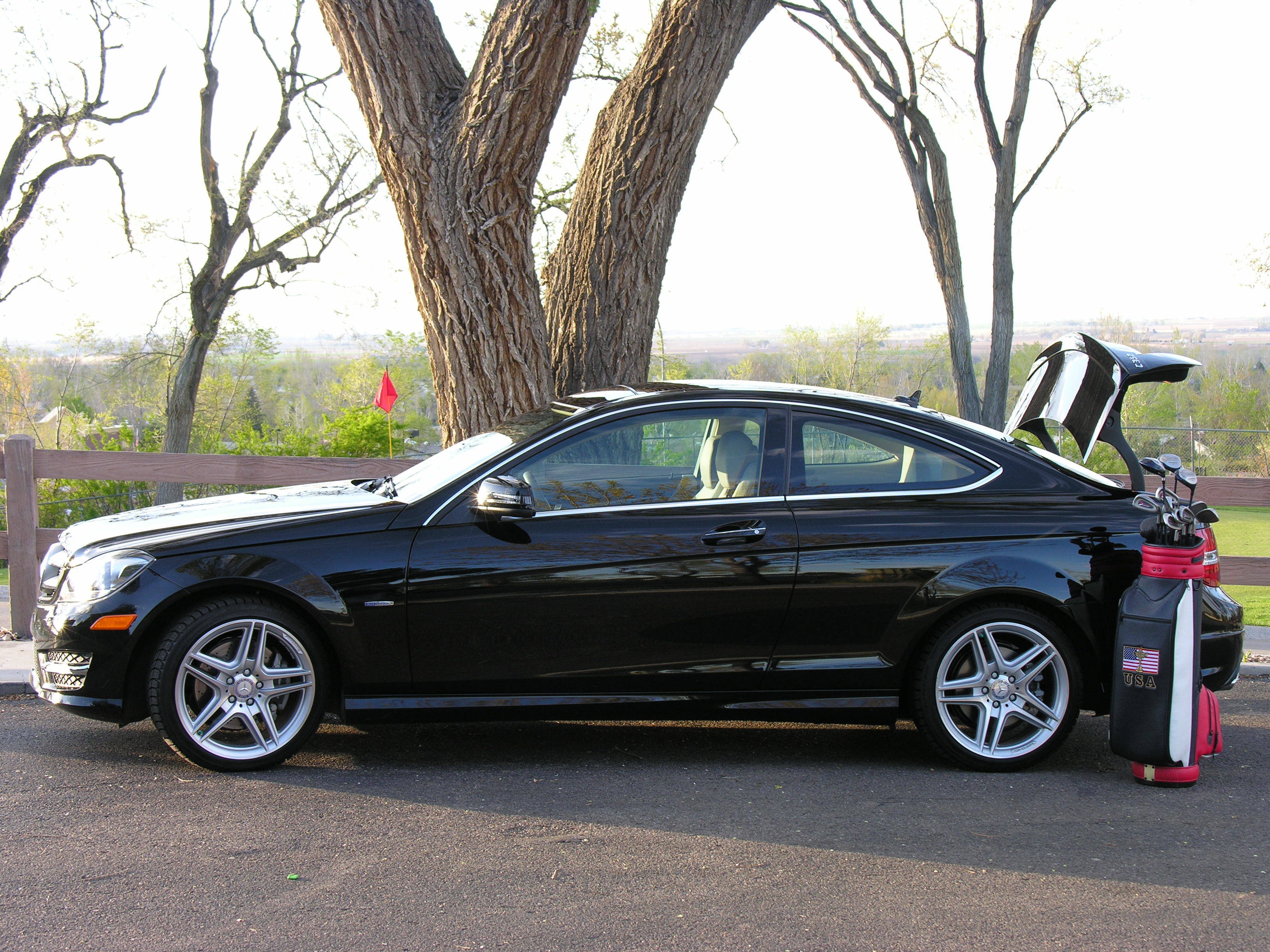 The Mercedes-Benz brought to me last week was the rear-wheel drive C350 Coupe with a 3.5 liter, 302 horsepower V-6. Engine torque was 273 lb. ft., and a seven speed automatic transmission was bolted to the power plant. At our altitude, zero to sixty acceleration time is 6.5 seconds, and at sea level that number is reduced one half second. Top speed is reportedly 155 mph. Handling and manners on the highway were superb – in fact, I liked this car out on the road like no other. It had upgraded Bridgestone 225/40R18 Blizzak LM60’s on 18” ten spoke AMG alloy wheels – part of the “Advanced Agility Package” on the car that added $1,400 to the M.S.R.P. Other add-ons included backup camera, service package, keyless entry, lighting package, lane tracking radar, and nav/radio/Sirius stereo (including weather radio) that together put $5,090 onto the sticker. Those items plus freight brought the total to $49,735.00, and the car came standard with a large panoramic moon roof. Wheelbase on this car was 108.7”, length – 180.7”, width – 69.7” and the weight was 3,497 lbs.