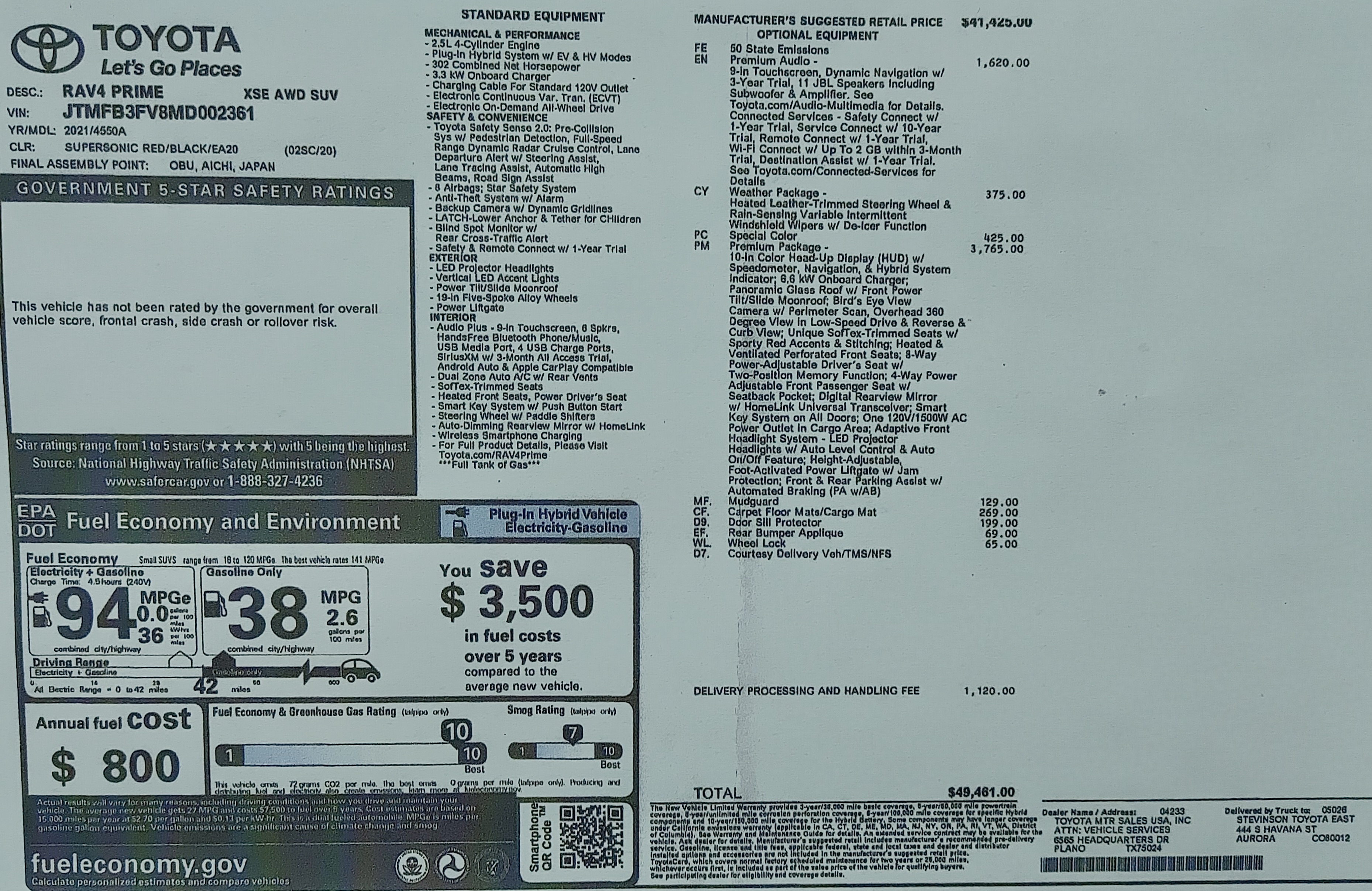 Additionally, the car had blind spot monitor ($500.00), lane departure alert with intelligent high-beam headlamps ($1,015.00), navigation package with 8″ screen ($1,795.00), power trunk closer ($400.00), intuitive parking assist ($500.00), rain-sensing wipers with de-icer ($155.00), and heated leather trimmed/bamboo steering wheel ($450.00). Thus the base price and freight of $925.00 pushed the total M.S.R.P. to $48,605.00.