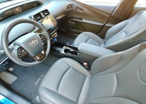 Size-wise, this ES is a luxo-Camry with 111” wheelbase and a 16-foot overall length. It’s heavier than a Camry, though, at 3,700 lbs. with its big battery. That battery restricts the trunk to 12.1 cubic feet, and on this ES the lid powers up and down. No restriction is evident in the back seat, however, with seating for three and a big armrest in the middle. Riding anywhere in the ES300h is a pleasure, and I felt the ride was superb while motoring up through northeastern Colorado and into Perkins County, Nebraska. Lexus ES300h styling is suitable for me and me and Ruth really liked the Atomic silver tone. The front-end styling is fine and so is the rear with the exhaust tips concealed, hybrid-style.